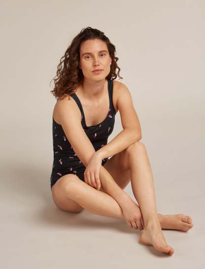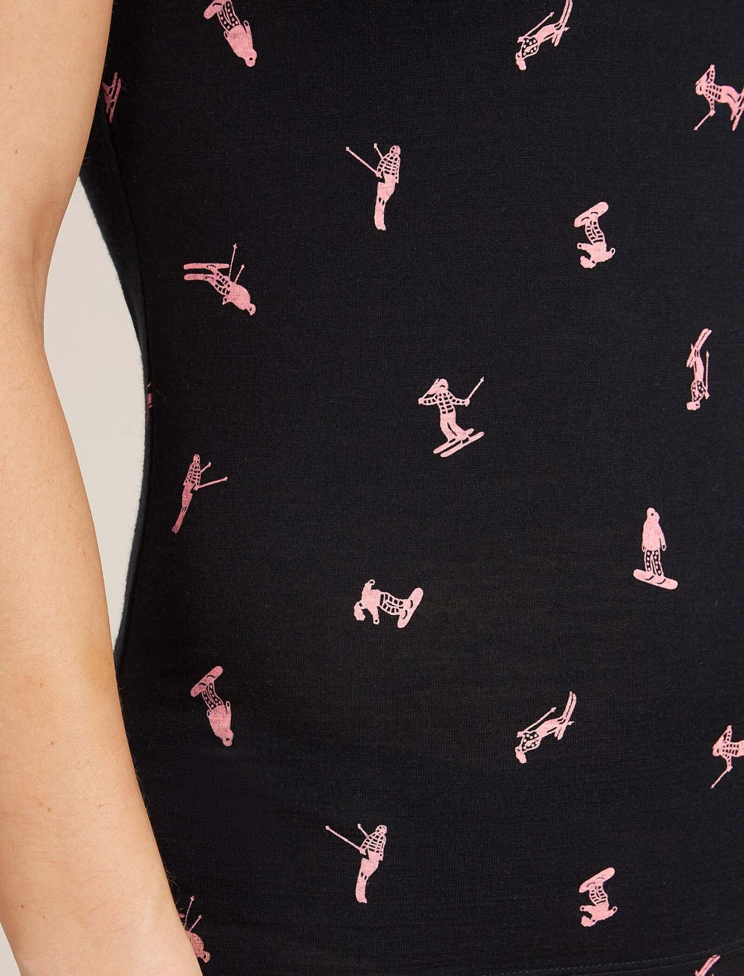 A soft and stretchy top for everyday comfort and layering, the Merino 150 Siren Tank Snow Day features a slim fit and our corespun merino blend fabric. A fun all over print of various snowboarders and skiers, making there way down the piste. ?