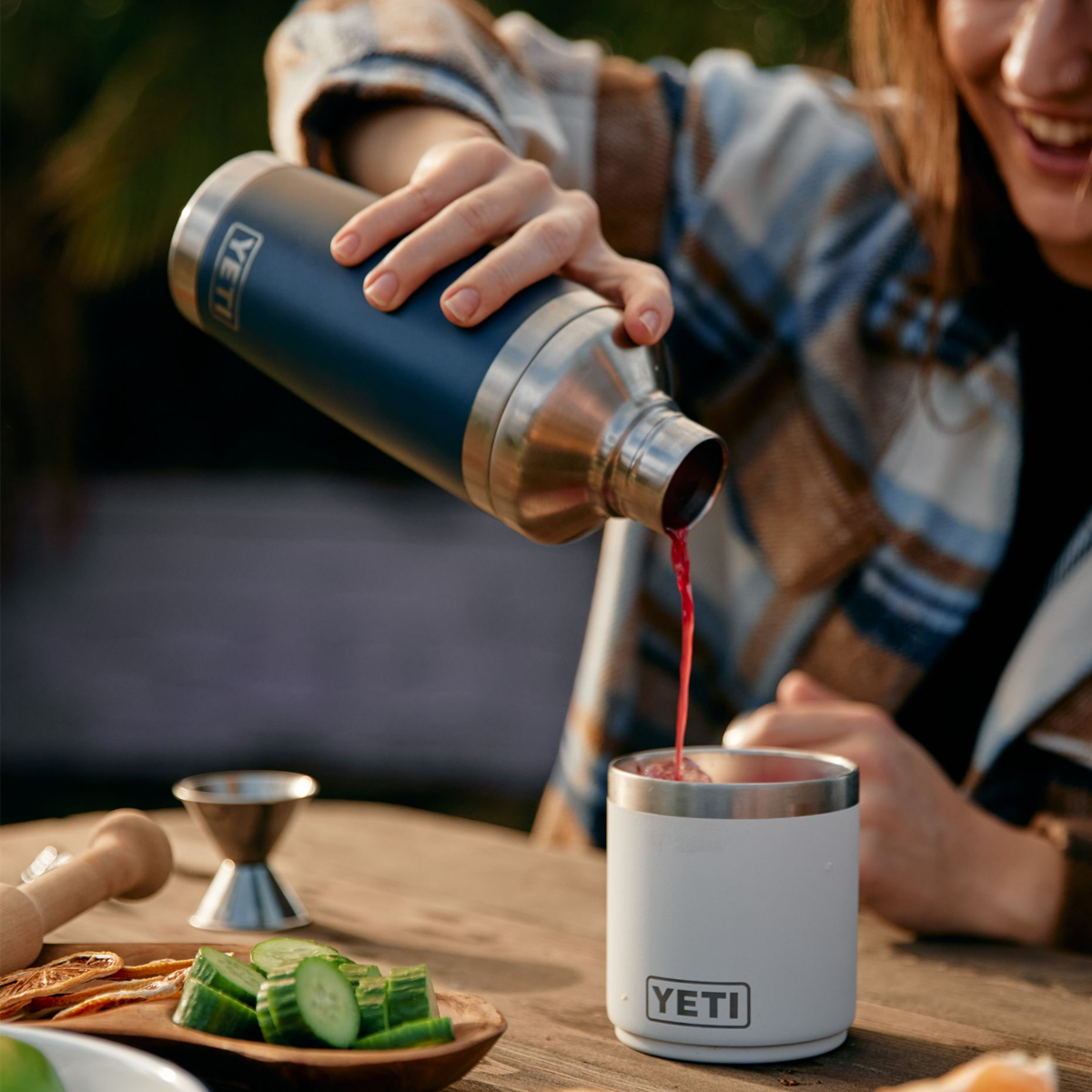 Make any hour happy hour with the leak-resistant YETI cocktail shaker that’s as durable as it is portable. It’s made with stainless steel, features double-wall insulation, and No Sweat™ Design so your drinks are consistent and cold from the first pour to the last. Lid is compatible with Rambler® 10 oz. Lowball, Rambler® 10 oz. Stackable Mug, Rambler® 16 oz. Stackable Pint, Rambler® 24 oz. Mug, Rambler® 25 oz. Straw Mug and the Rambler® 20 oz. Tumbler.